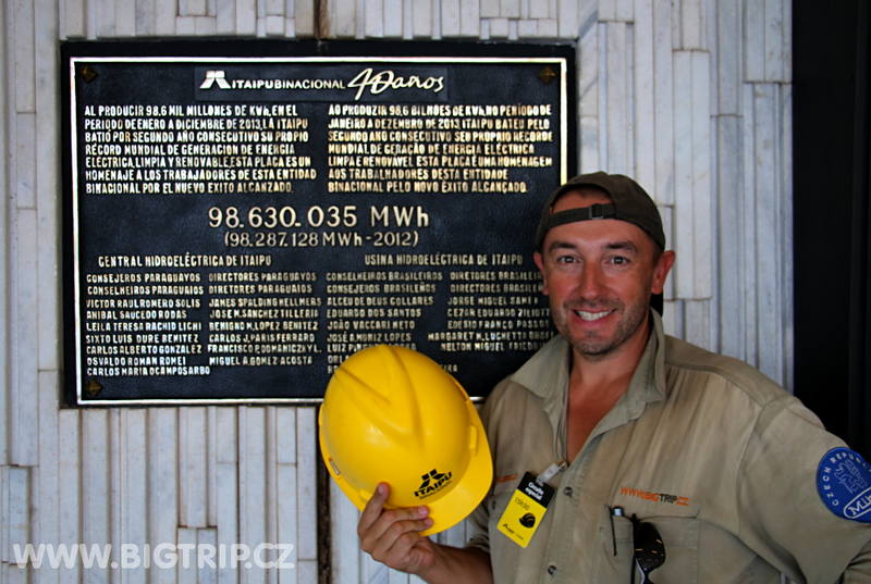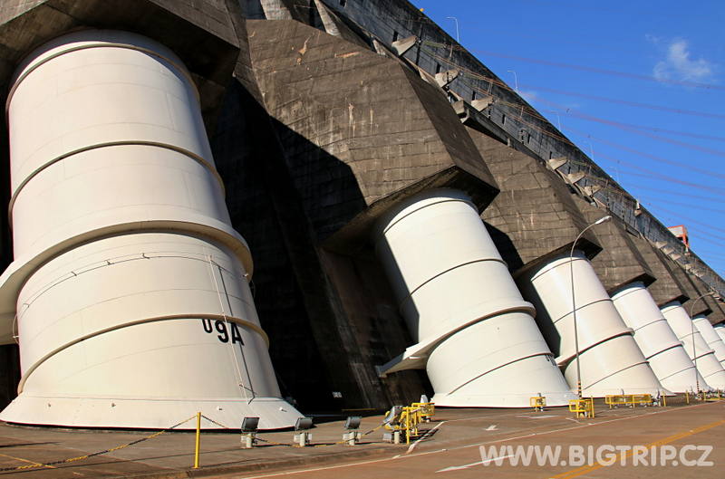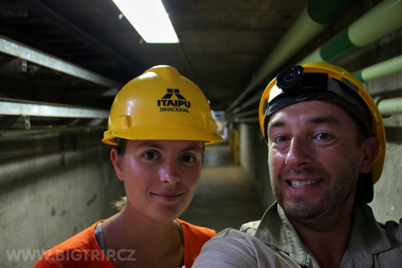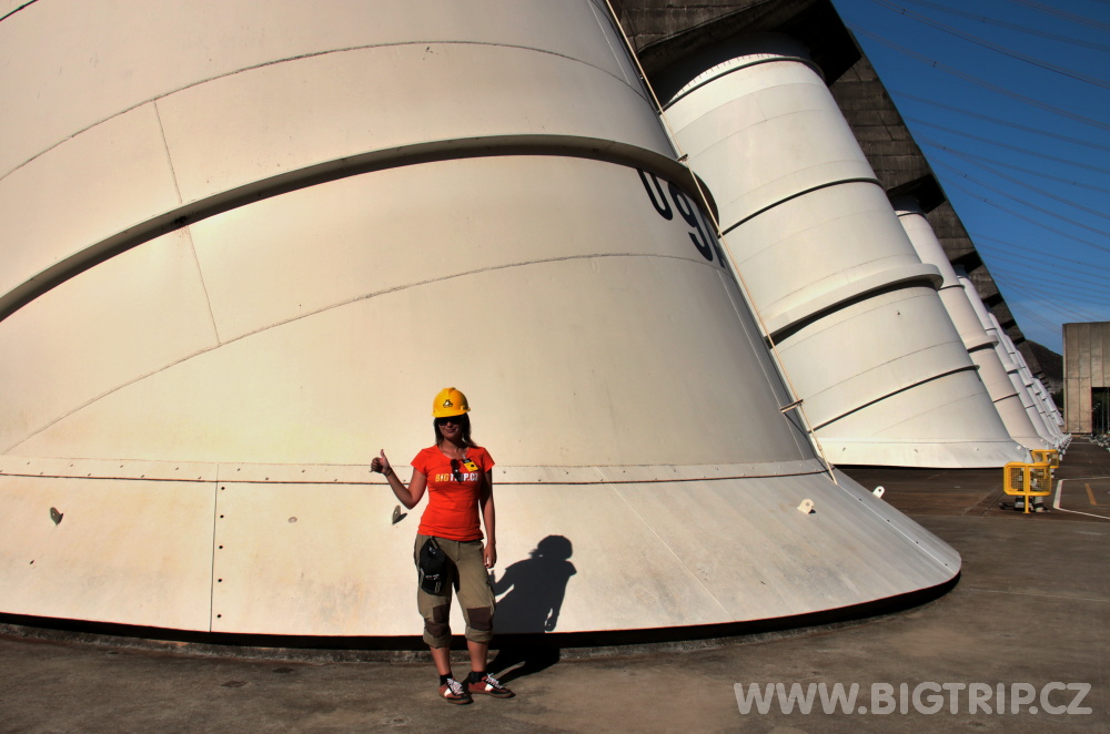 Autobus vyráží a naši průvodci nás seznamují s elektrárnou Itaipu. Po tom co jí celou objedeme, vyběhneme si na čumendu nahoře na hrázi, jdeme také dovnitř. Protože jsme jen tři anglicky mluvící, máme vlastně takovou individuální prohlídku. Musím uznat, že naše průvodkyně má načteno a nenechá se zaskočit žádnou technickou otázkou, které ze mě i z kolegy spolunávštěvníka padají.