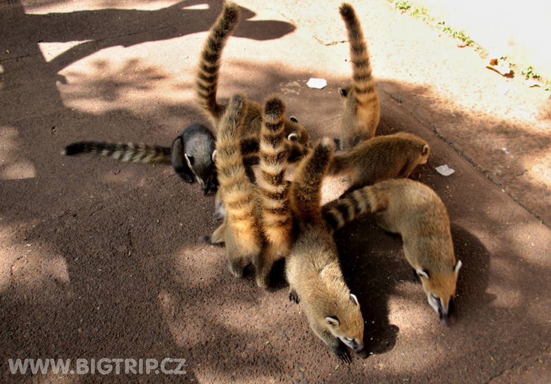 Postupně si projdeme všechny vyhlídky a kocháme se tou hřmící silou. Při přecházení od vyhlídky k vyhlídce se nám o zpestření starají nosálové na cestě žebrající sušenky, ještěři podél cest vyplazující ta svá jazyčiska a ve vzduchu tančící motýly.