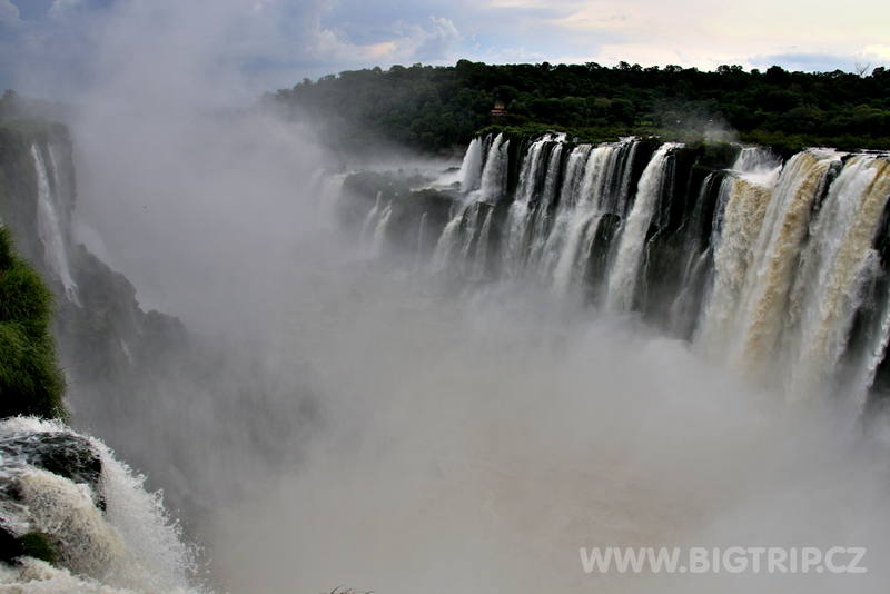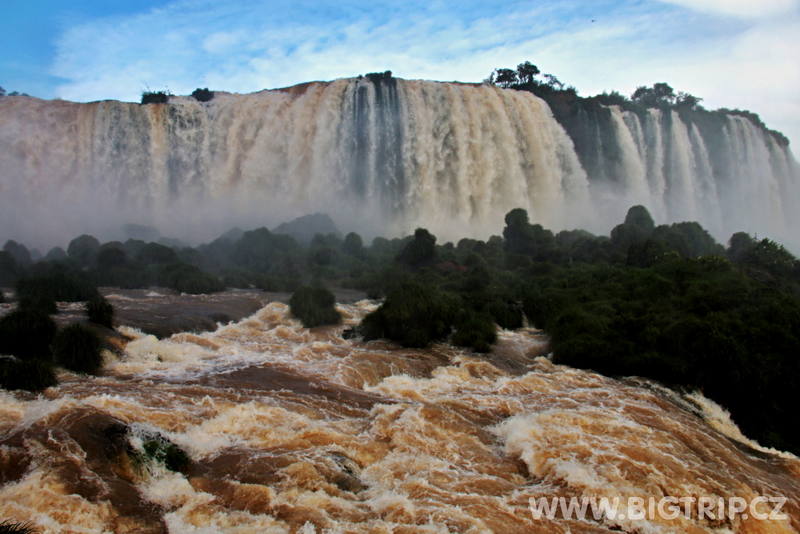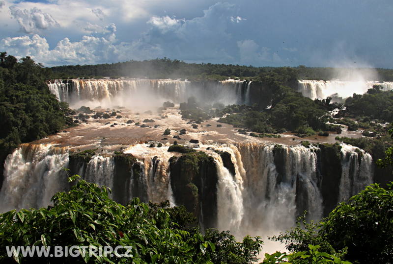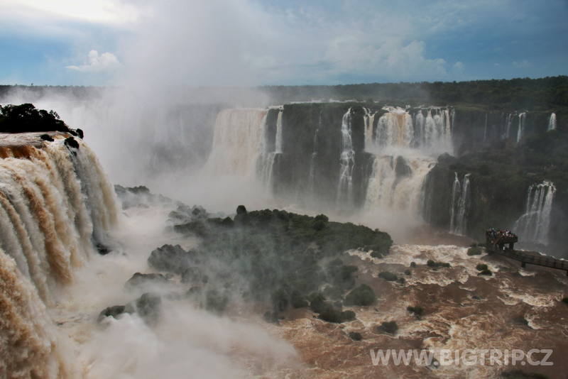 Už po vystoupení z autobusu slyšíme skrze hustý pralesní porost dunění a hřmot vodopádů. Sestupujeme stezkou až k první vyhlídce a tam se před námi poprvé objevuje ta krása. Nespoutaná síla přírody v podání největšího vodopádu světa.