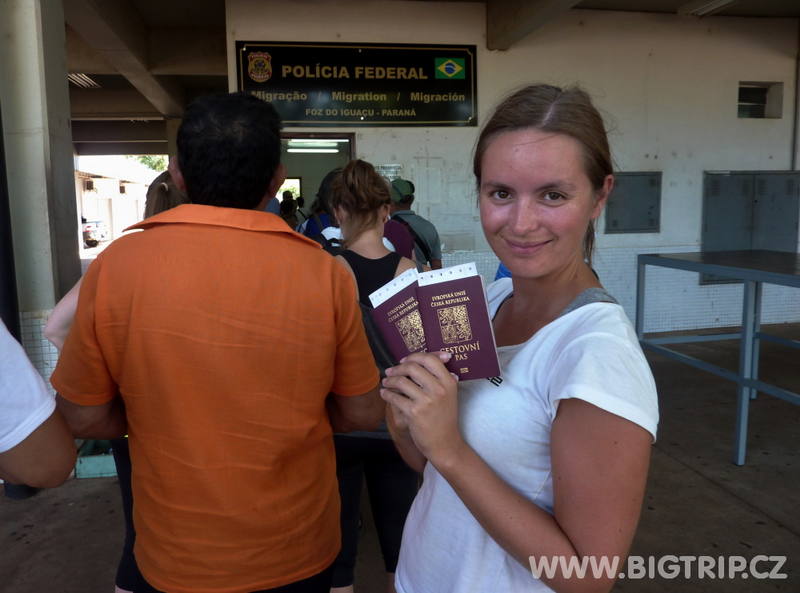 Dnes zase jedeme na vodopády, ale z argentinské strany. I přes očekávání hraniční kontroly, projíždíme do Argentiny bez zastávky na brazilské straně. Na argentinské celnici dostáváme razítko do pasů a během chvilky pokračujeme dál.
