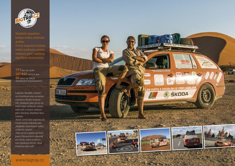 Pamětní plakát k úspěšnému zvládnutí jedinečné cesty kolem světa, které se dostalo zápisu do České knihy rekordů, jako „Nejdelší cesta kolem světa osobním autem“.