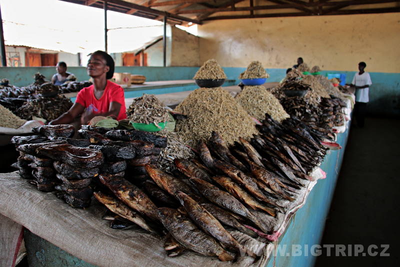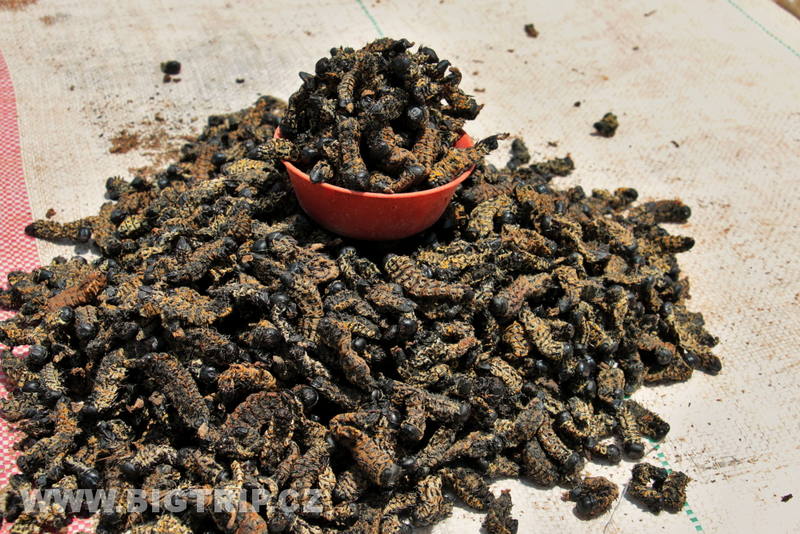 V Zambii jsme poprvé na trzích zahlédli grilované červy. Prozatím jsme si nechali ujít chuť. Láďovi však neunikly smažené rybičky všech druhu.