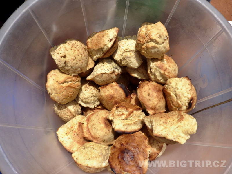 Já se pro změnu našla ve slaných buchtách. A taky pečené pie kapsičky plněné masem, které si nás získali okamžitě oba.