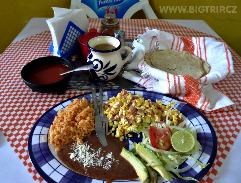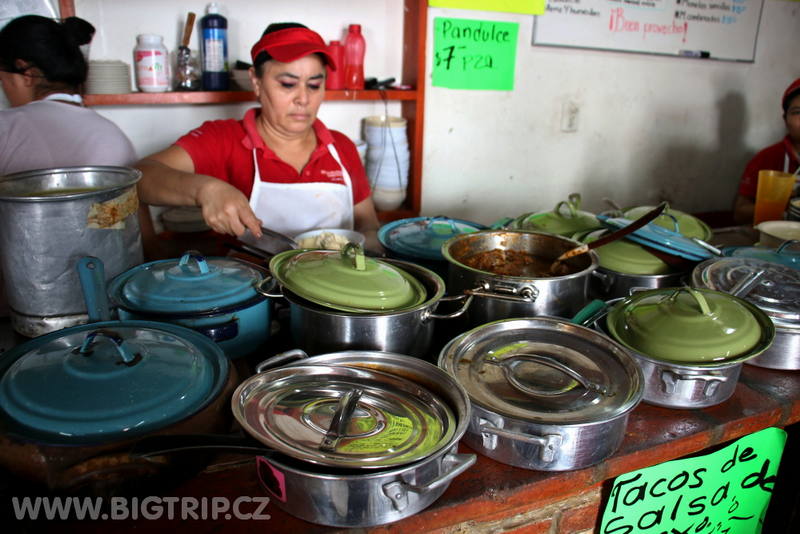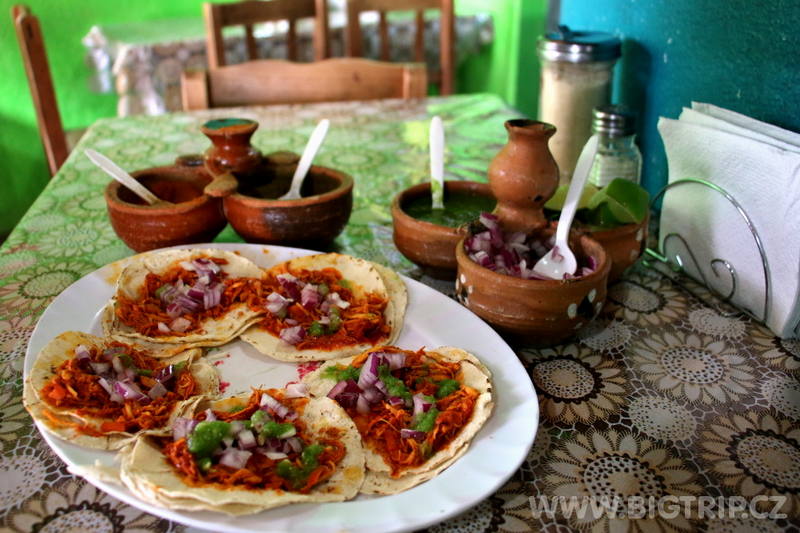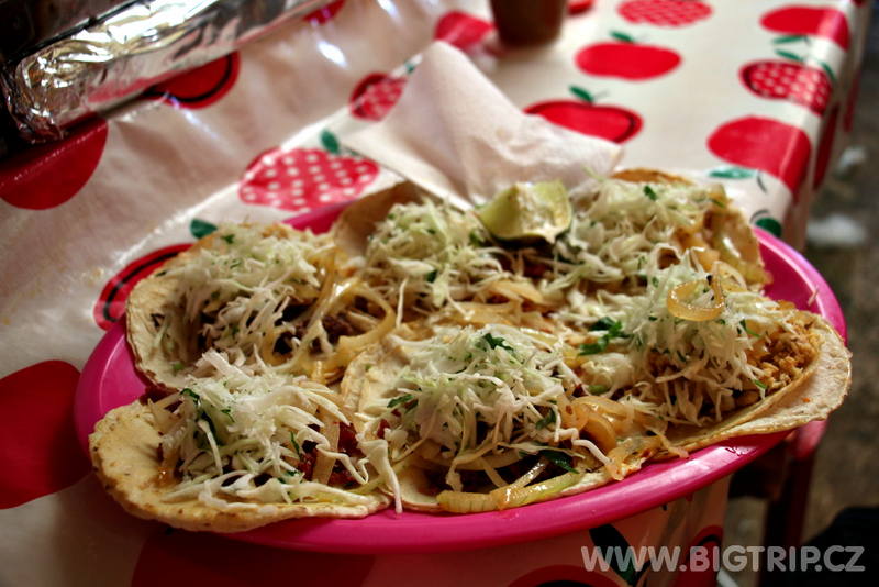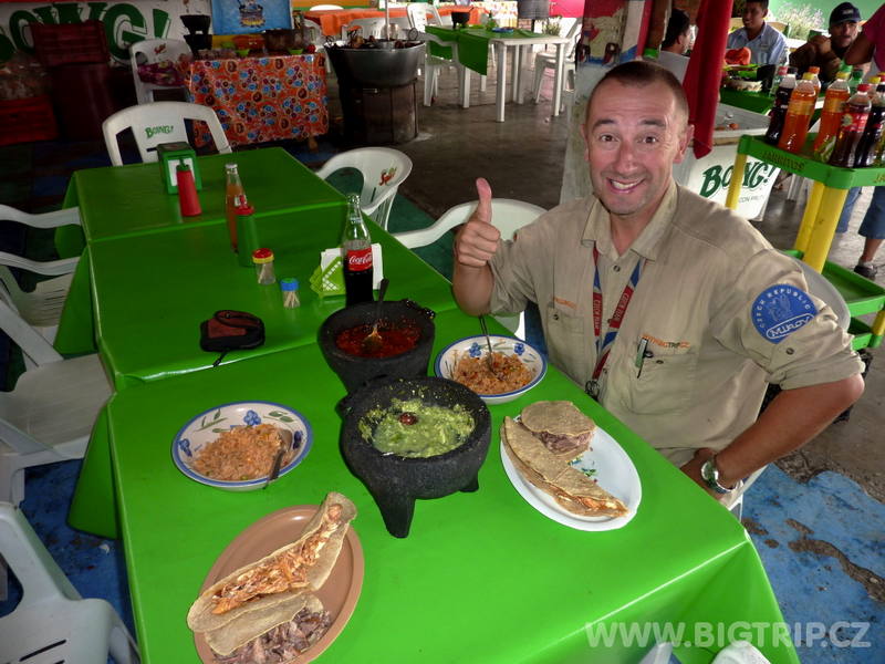 Když se dřív přede mnou řeklo Mexiko, představila jsem si hlavně pikantní jídla a tequilu. Nyní to vidím jinak. Mexiko, to je pivo Corona a Modelo, pálenka Mezcal a tortily na miliardu způsobu. S tou pikantností to taky není tak horké, i když je fakt, že zatímco já jsem na množství opatrnější, Láďa má plechovou hubu a jídla ho nepálí vůbec. Mexičani se však nechtěli vzdát své pověsti a tak zkoušeli, co vydrží. A vydržel hodně :-) Delikateskou pak pro oba byl chapulin – smažená kobylka, do které jsem šla i já :-)