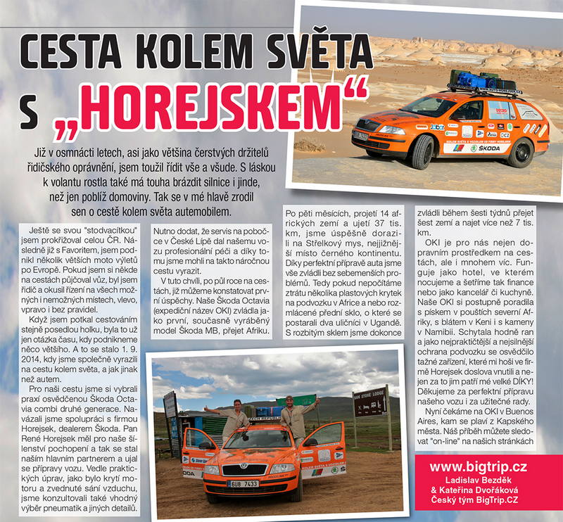 Jak to bylo s naší OKI před výjezdem na cestu kolem světa? Proč jsme navázali spolupráci právě se společností Horejsek? To vše si můžete přečíst ve vydaném článku od zpravodajského deníku Blesk nebo níže v přiloženén fotografii.