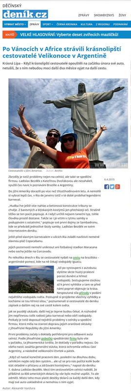 Tak o našich problémech ohledně OKI se již píše i v Děčínským deníku! Článek opět přikládáme níže a nebo si ho můžete přečíst na portálu Děčínského deníku ZDE: Po Vánocích v Africe strávili krásnolipští cestovatelé Velikonoce v Argentině